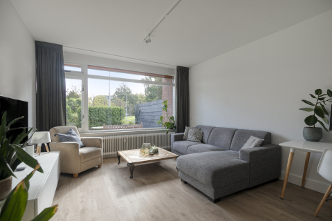 Upon entering, you step into the hallway which gives access to the bathroom equipped with a bathtub, sink, and toilet, as well as a separate large storage closet with a washing machine connection. The living room is spacious and offers a beautiful view over the canal—an ideal spot to relax. Adjacent is the dining area, which flows into the bedroom. A stylish glass partition separates the bedroom from the living area, giving the apartment a modern and open feel. From both the bedroom and the kitchen, you look out over the green inner gardens, offering peace and privacy.